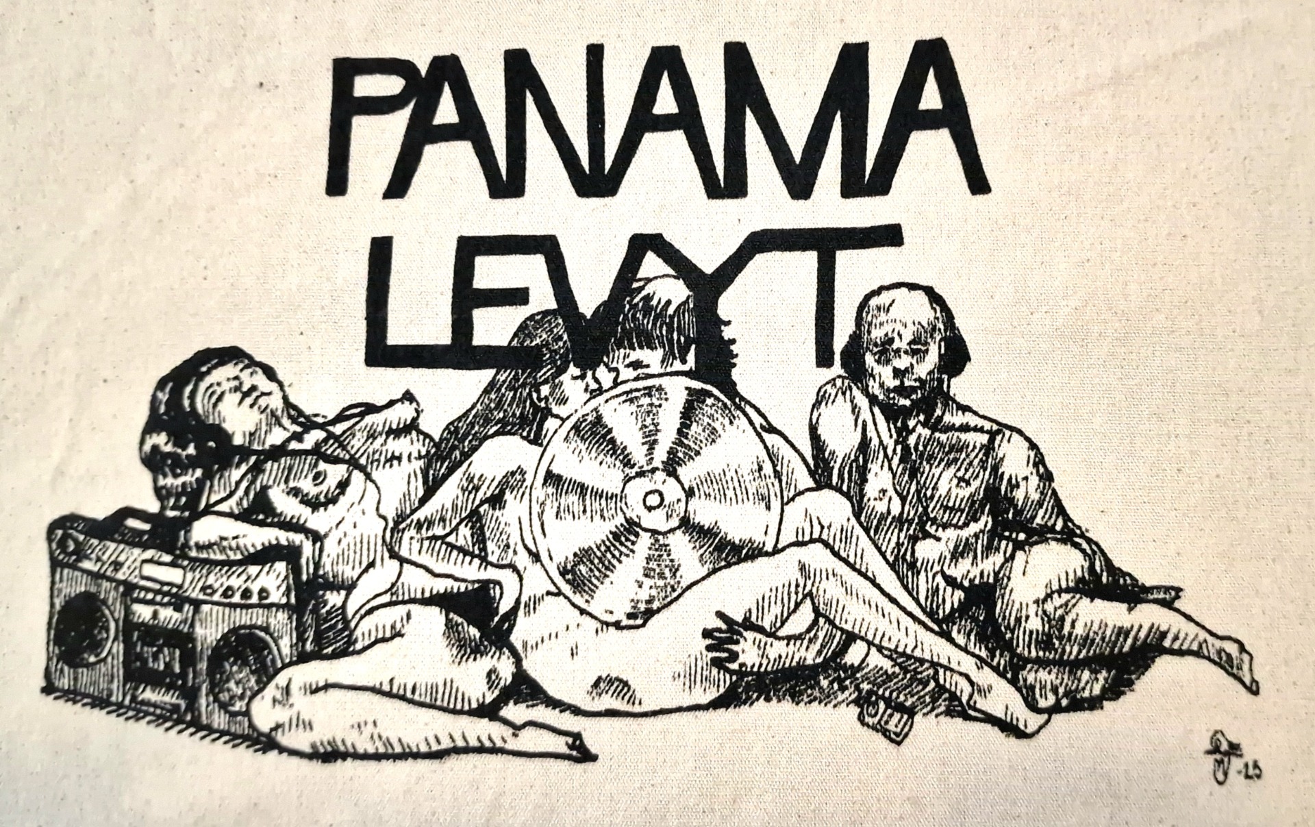 Panama-levyt pohjallinen kangaskassi.Design Milla-Maija Saari.Seripainettu Painopisteellä Tampereella.